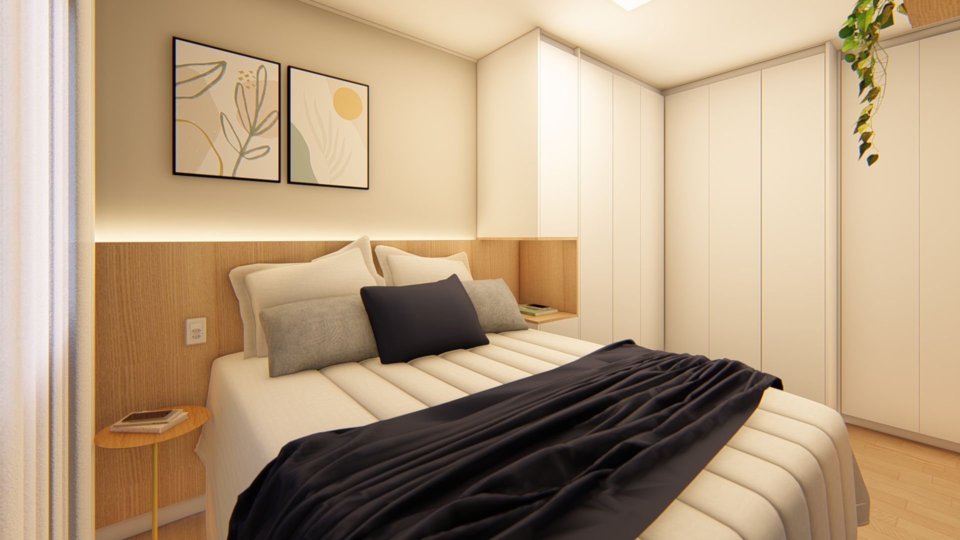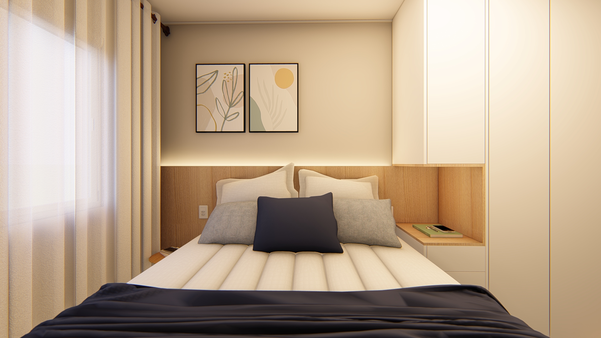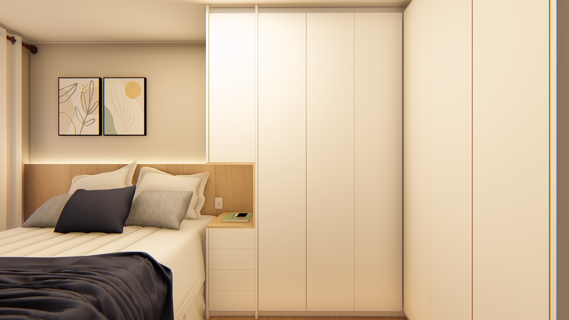 | Tipo de Obra | Projeto de Marcenaria Quarto Casal de Apartamento de 49 m² |