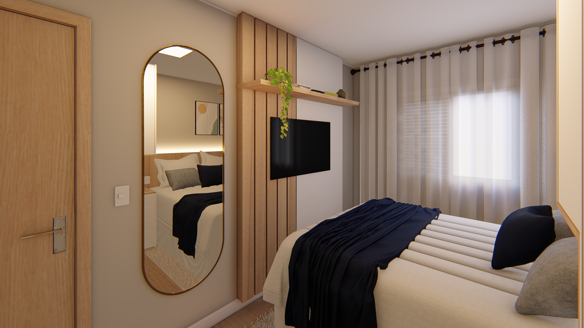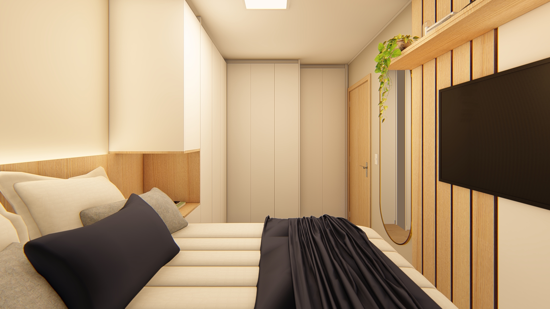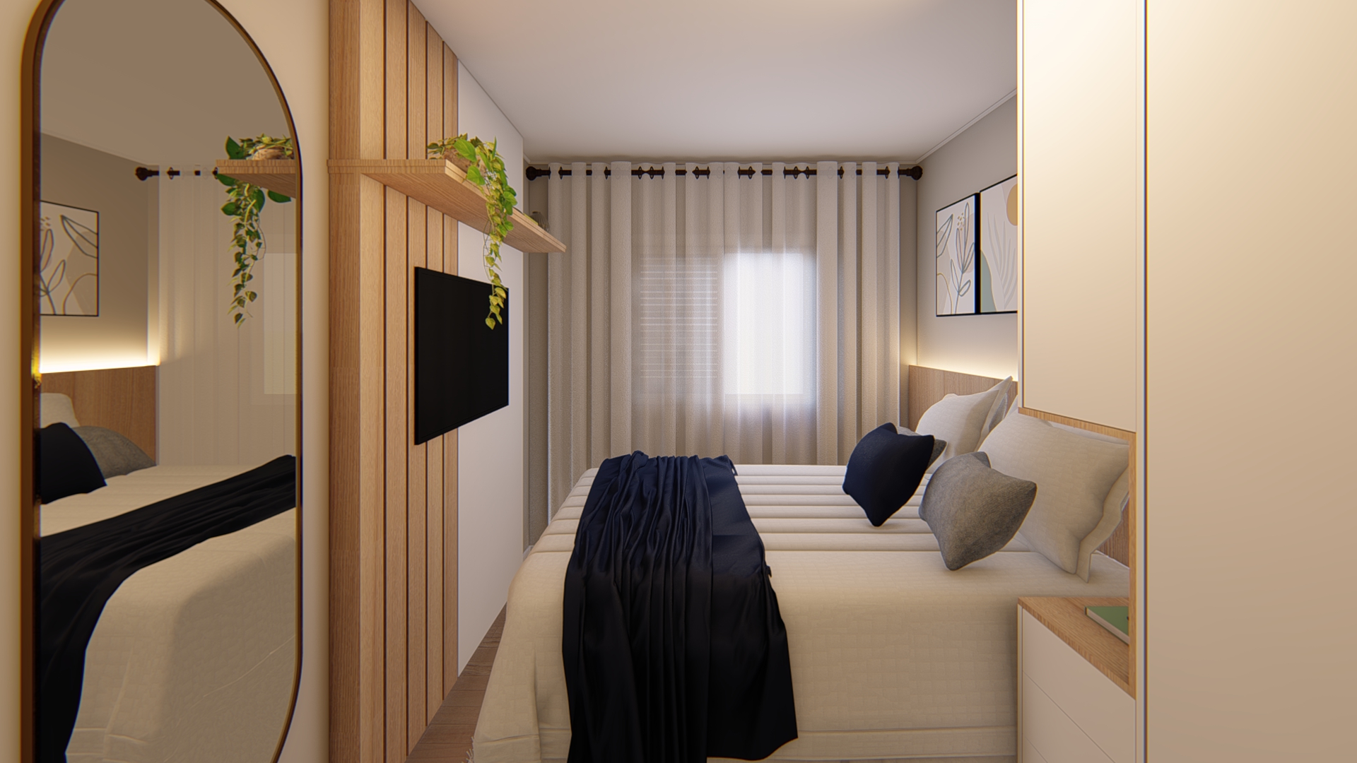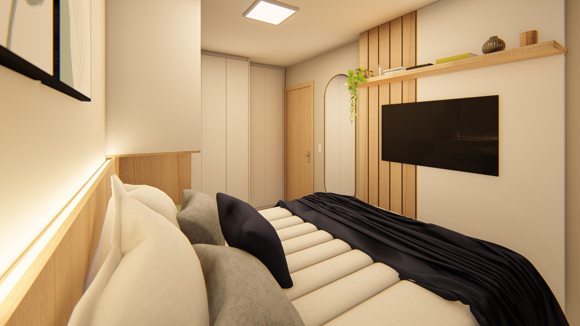 | Tipo de Obra | Projeto de Marcenaria Quarto Casal de Apartamento de 49 m² |
