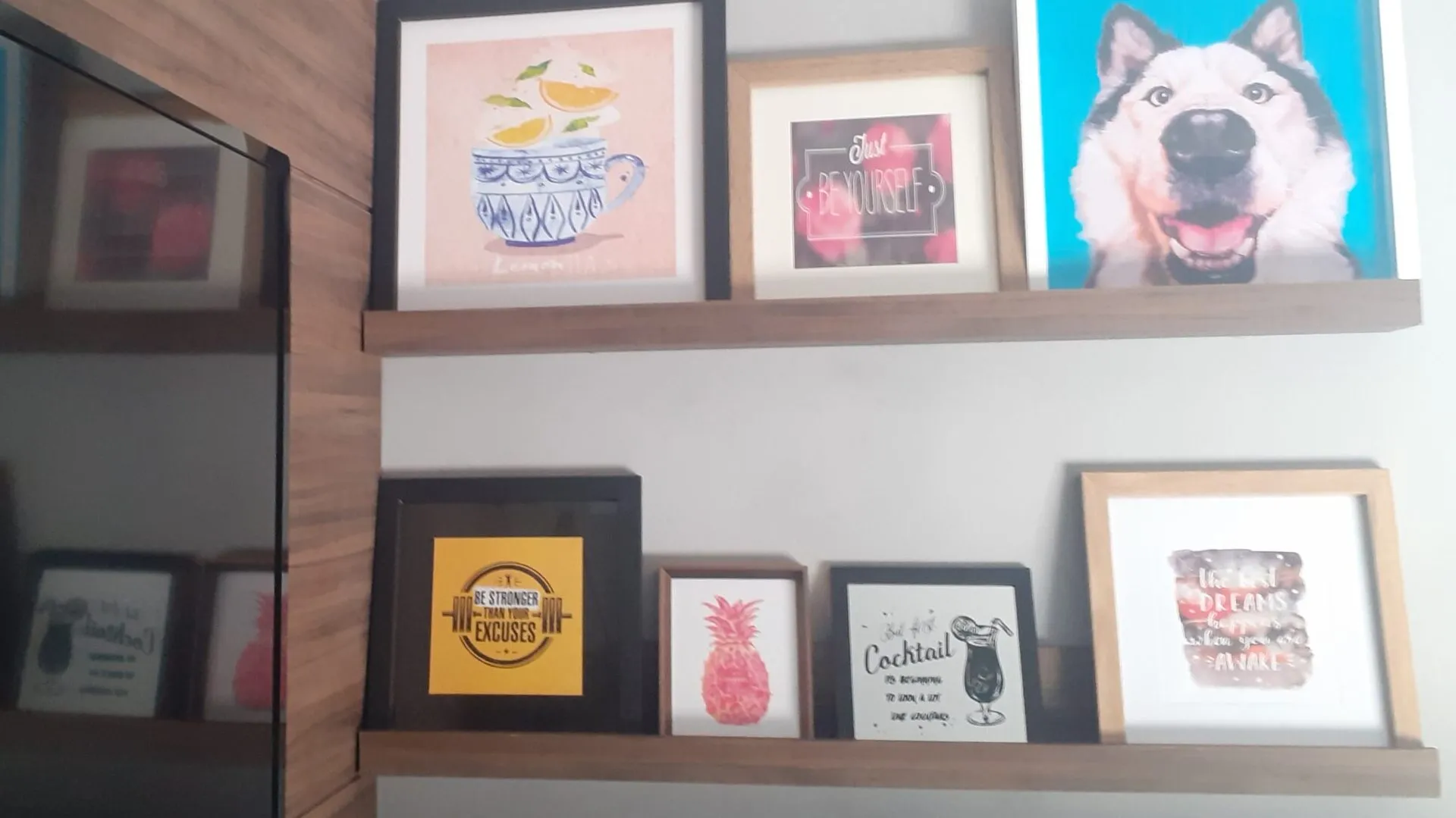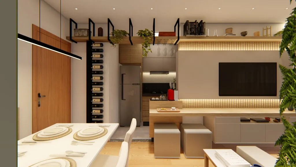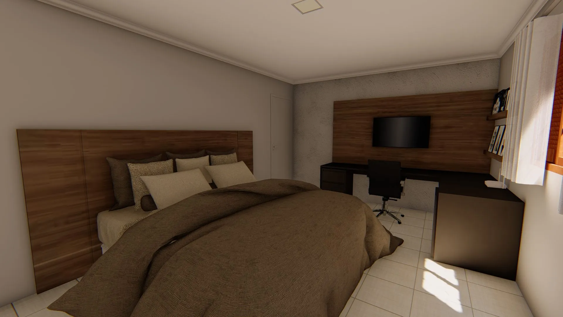 Projeto de marcenaria de bancada, painel e volantes. Acabamentos dos painéis em MDF Ameixa Negra da Arauco, bancada e volantes em MDF Preto Texturizado da Duratex, as gavetas dos volantes têm corrediças telescópicas com amortecedores para fechamento suave.
