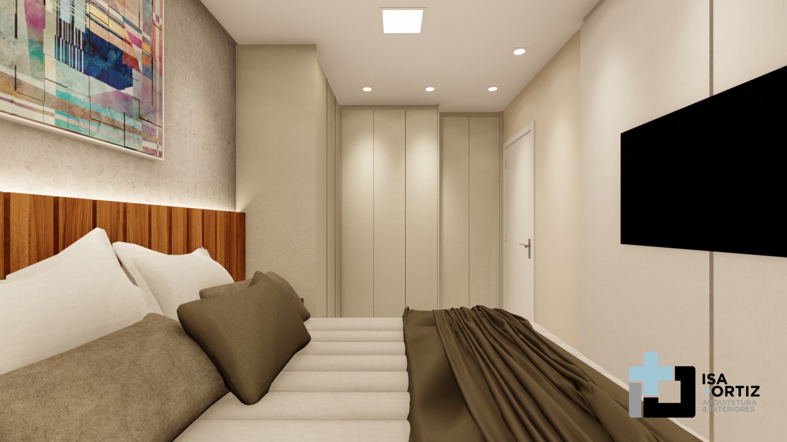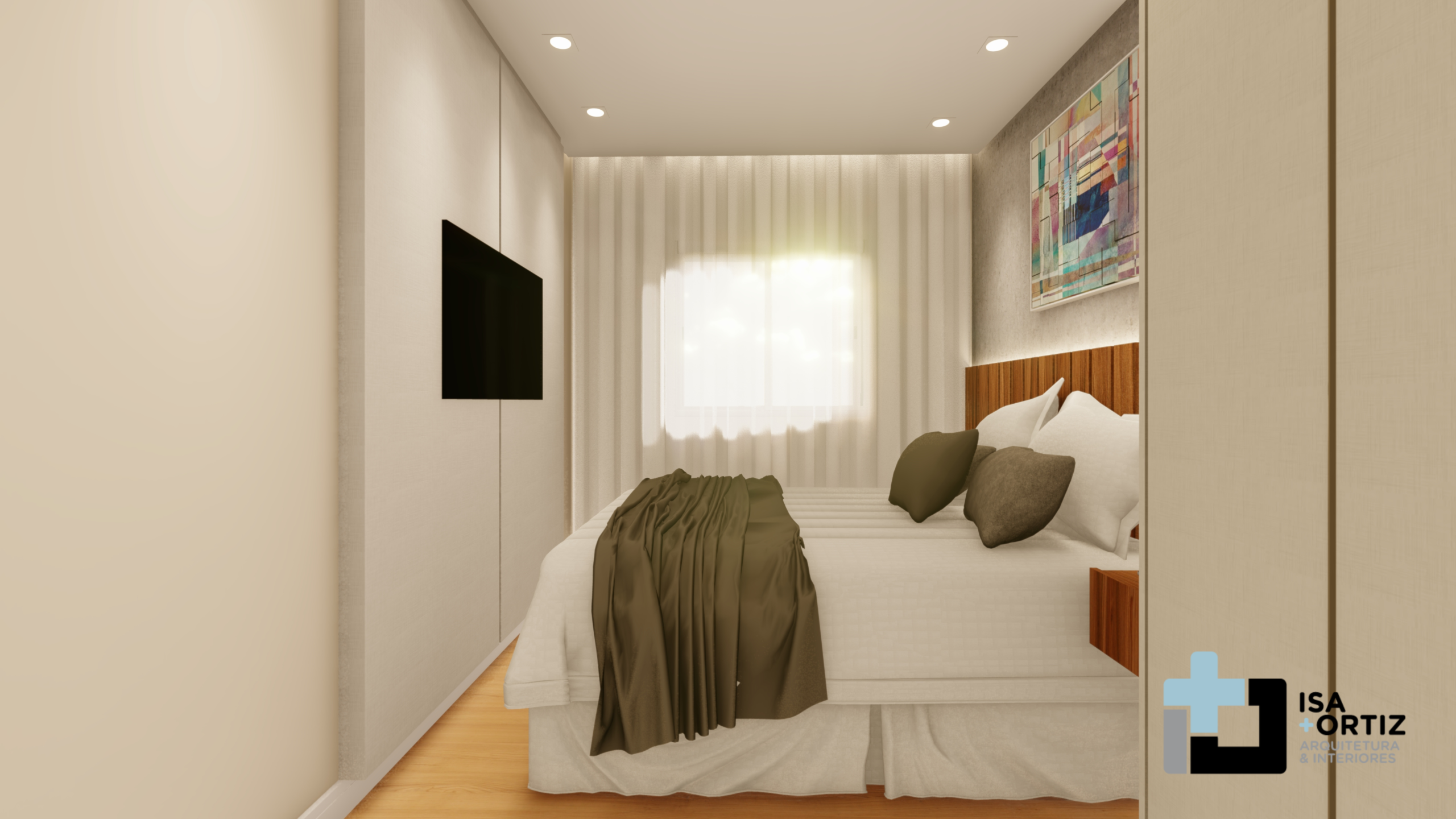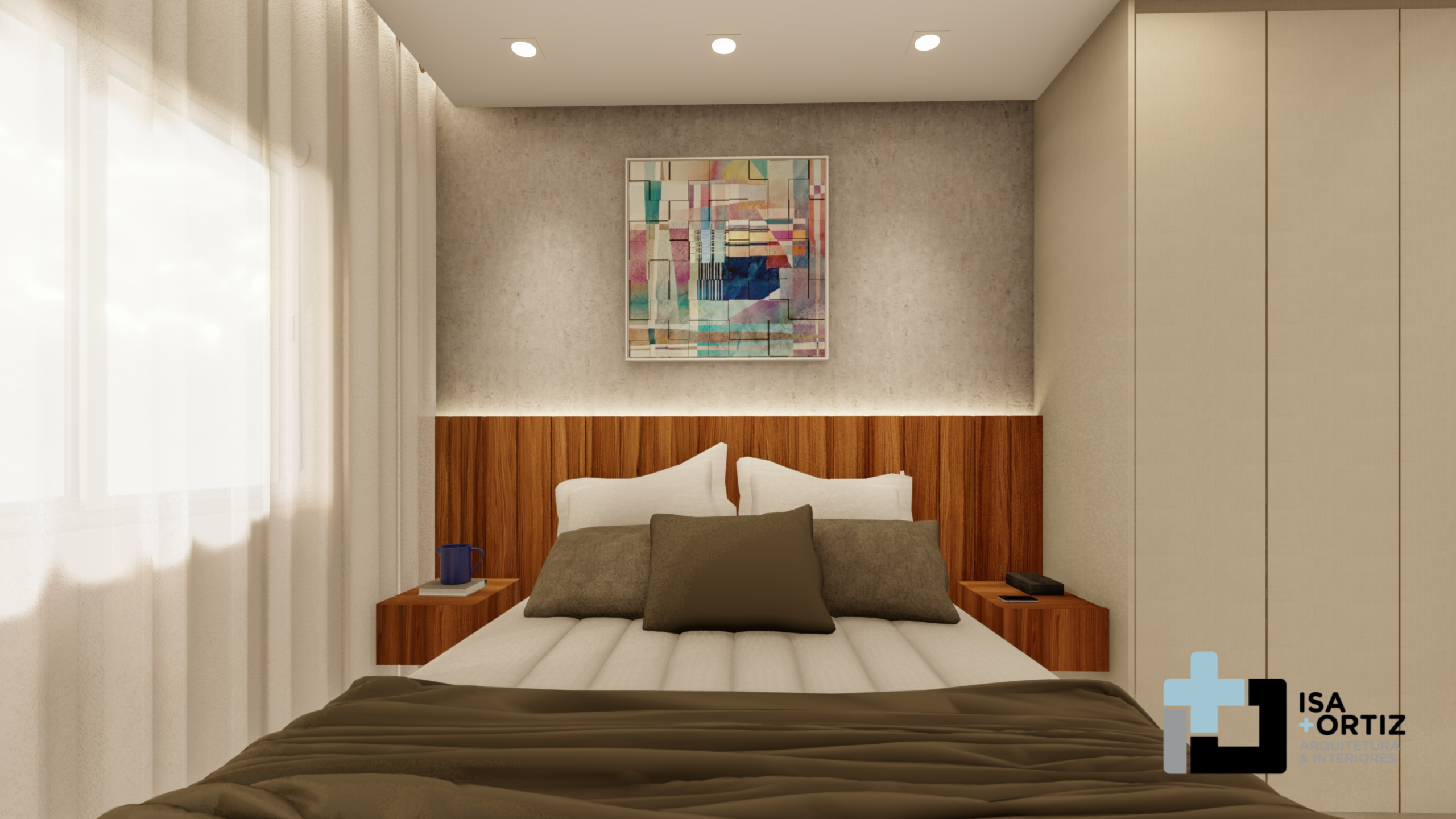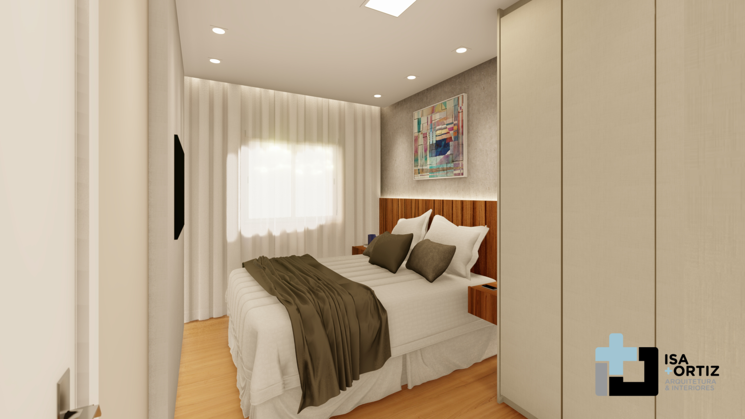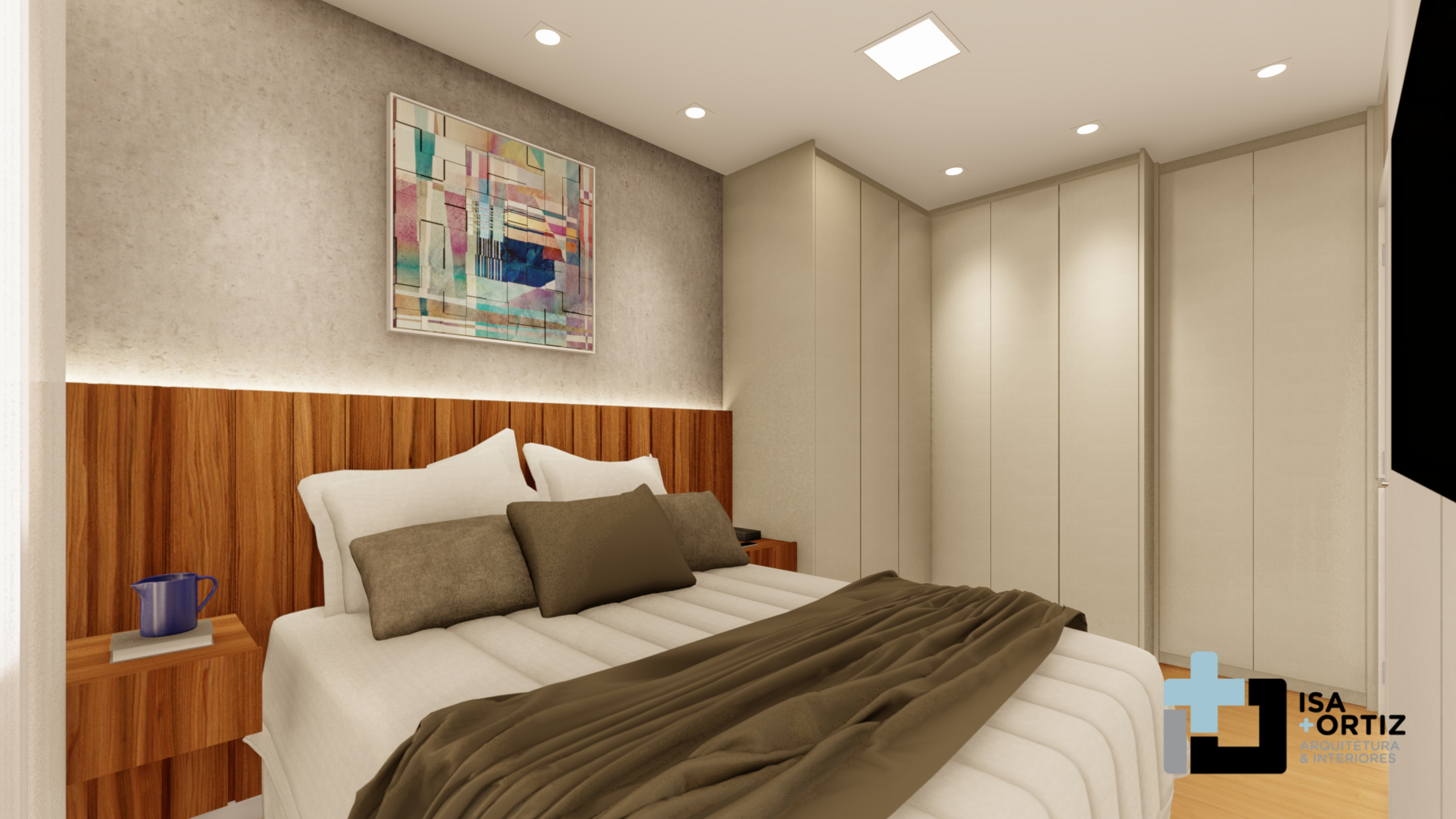 – Iluminação com plafon central fixado no forro, spots no forro, fita led no cortineiro e fita led na marcenaria;