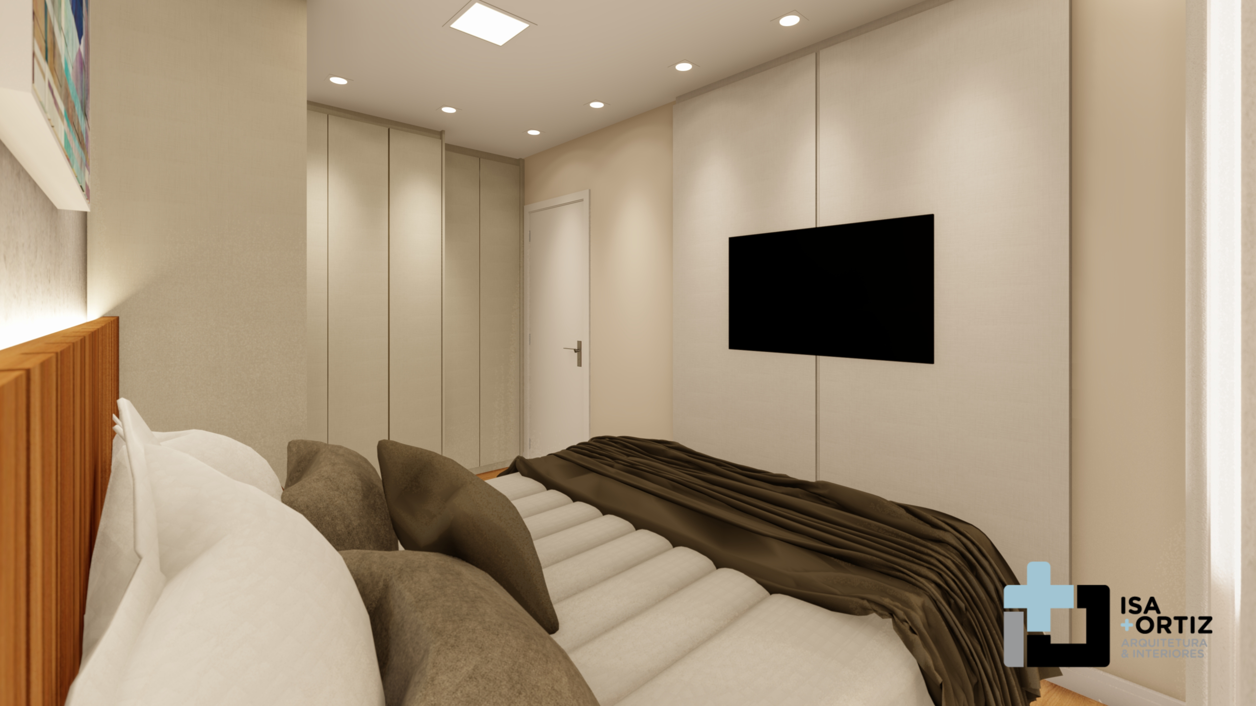 – Acabamento das paredes em pintura fosca em tom bege;