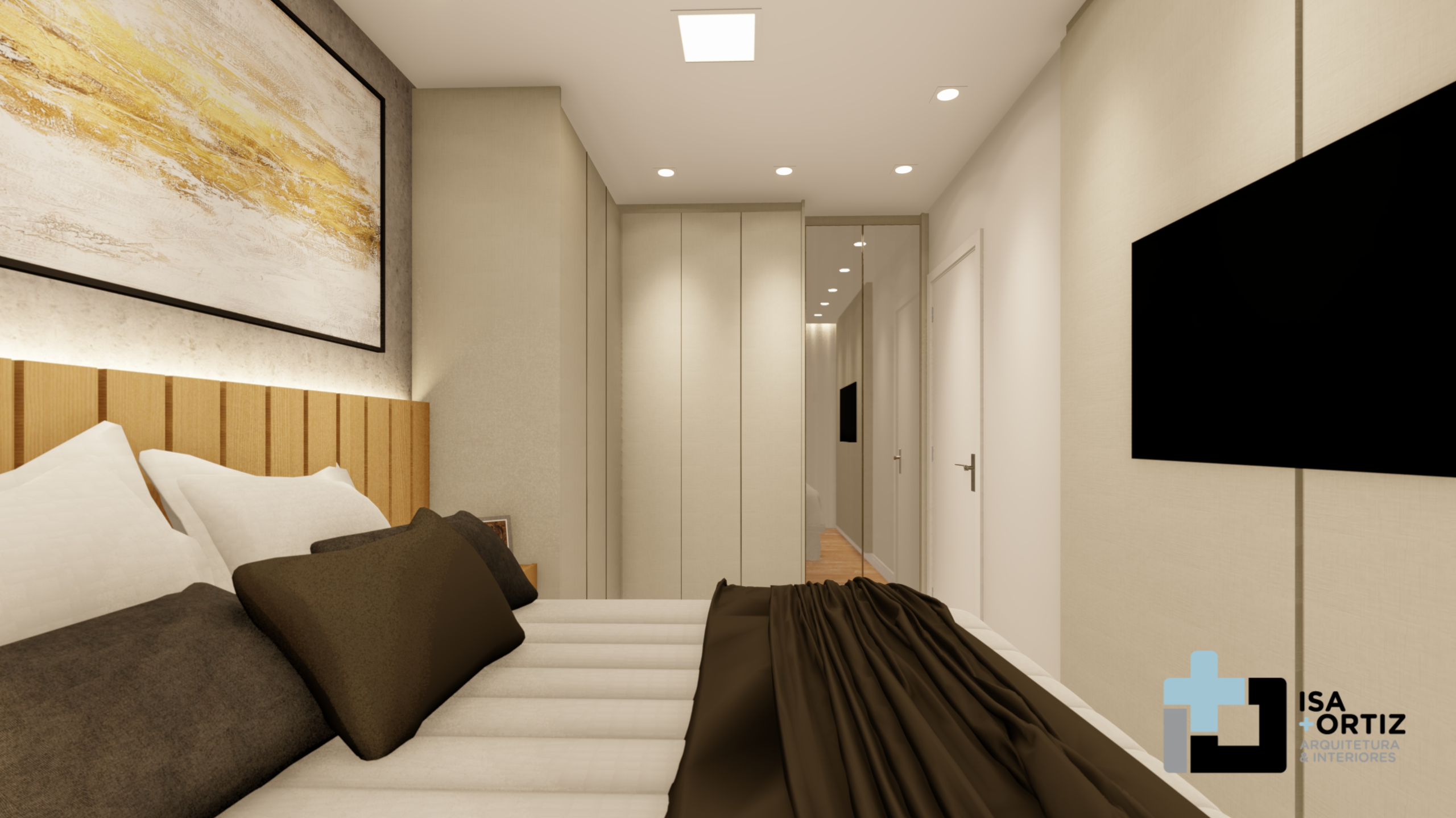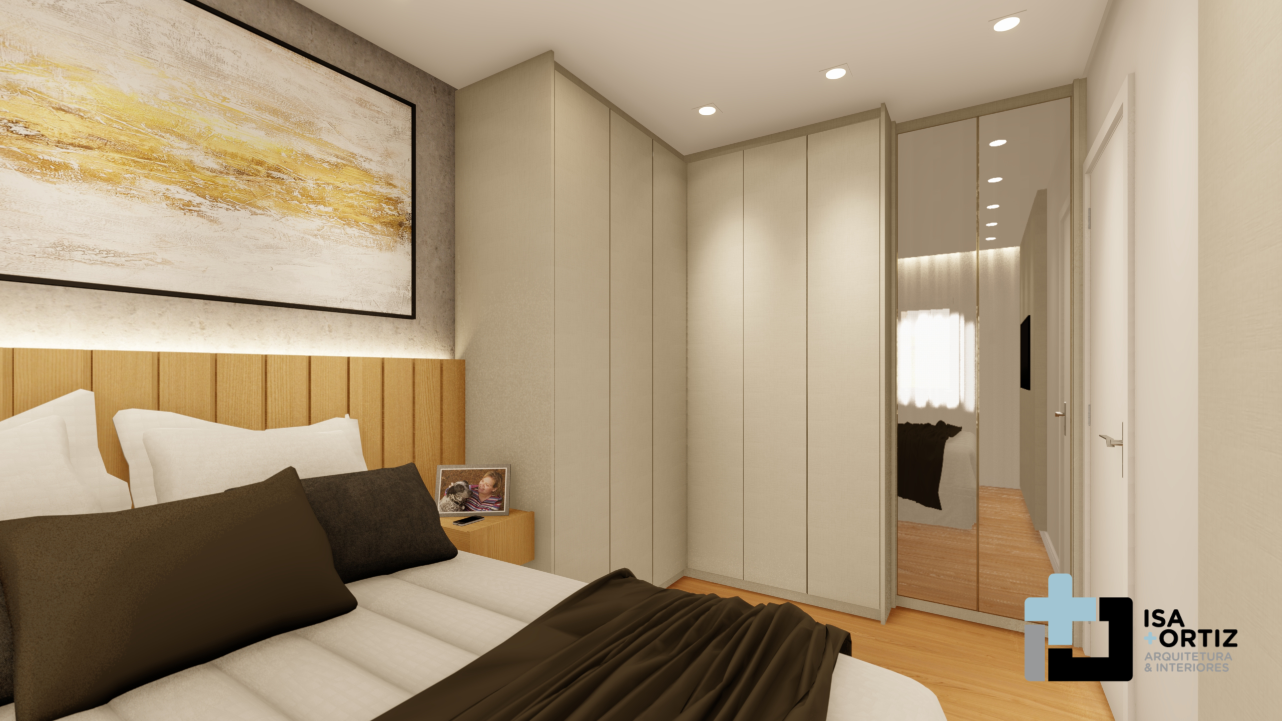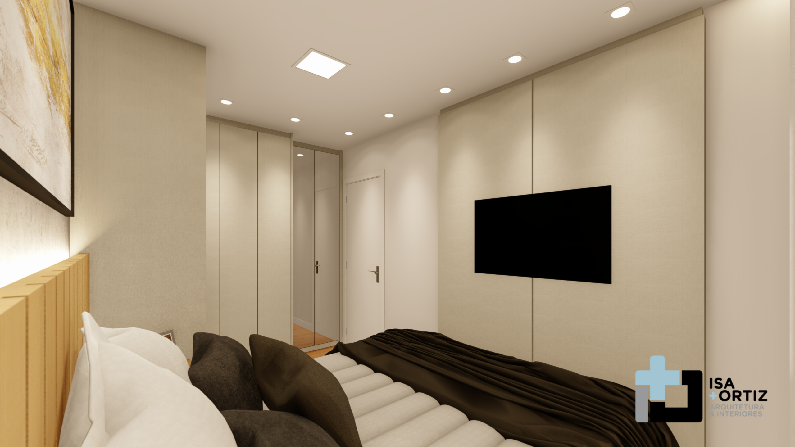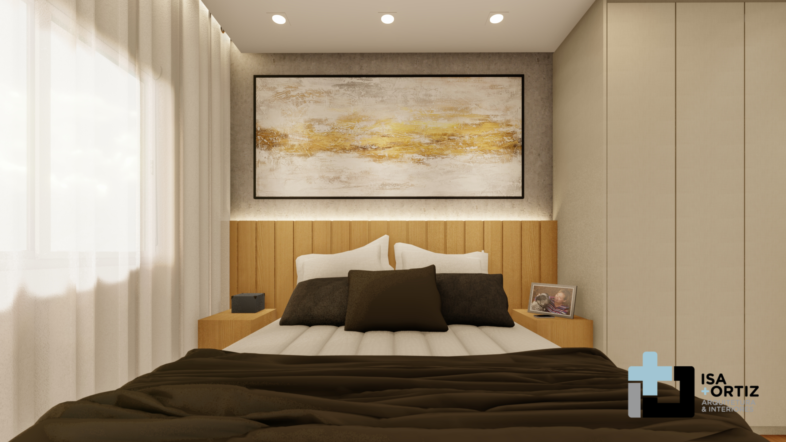 – Iluminação com plafon central fixado no forro, spots no forro, fita led no cortineiro e fita led na marcenaria;